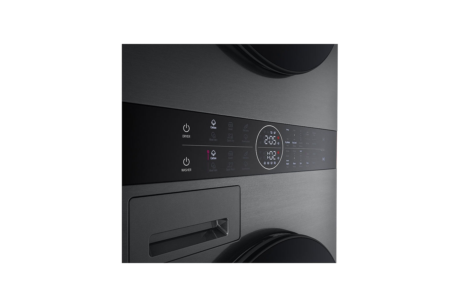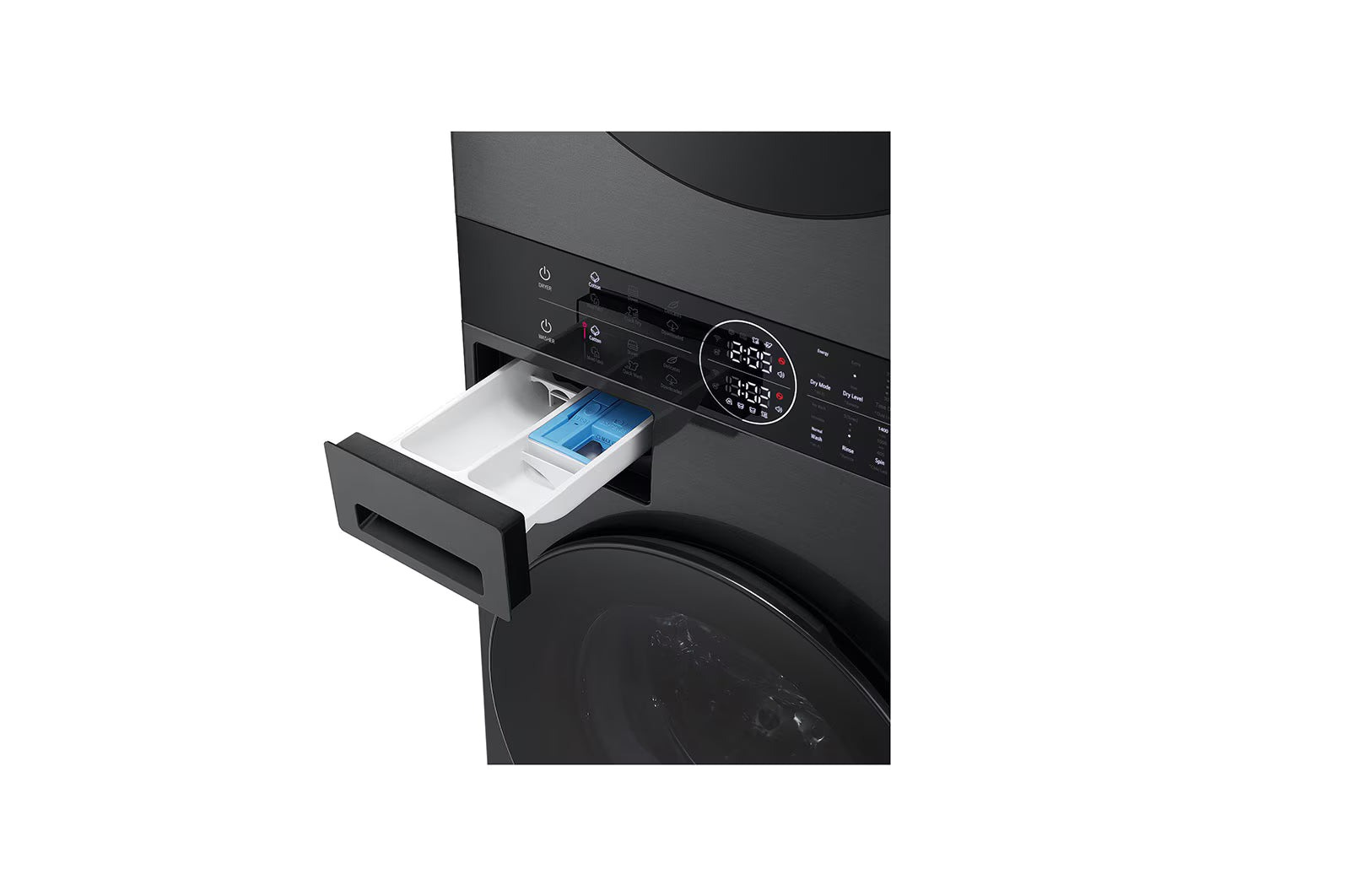 La LG WashTower™ W4W8BVPKZHM associe un lave-linge 12 kg et un